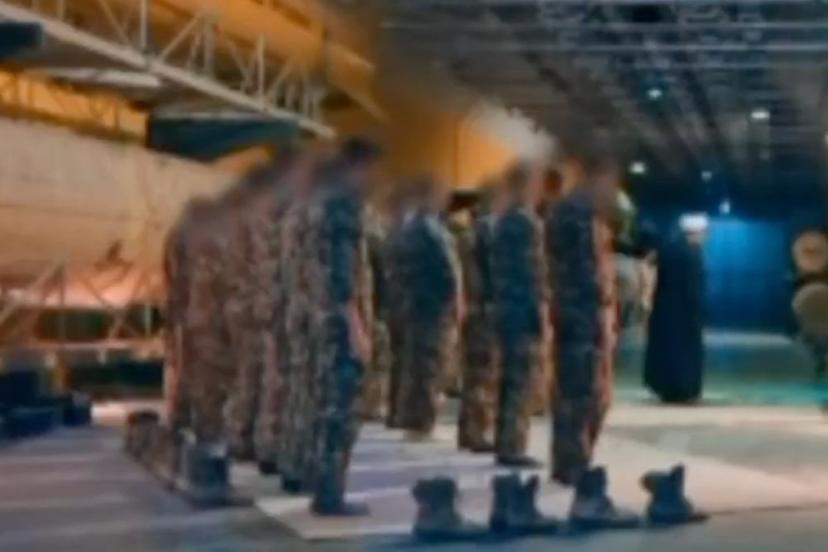 Görüntülerde İslam Devrim Muhafızları Hava Kuvvetleri'ne ait füze tünelinde bir grup askerin akşam namazını kıldığı anlar yer aldı.